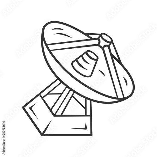 Radio telescope linear icon. Antenna and radio receiver. Parabolic antenna. Tracking satellites. Thin line illustration. Contour symbol. Vector isolated outline drawing. Editable stroke - Buy this stock vector and explore similar vectors